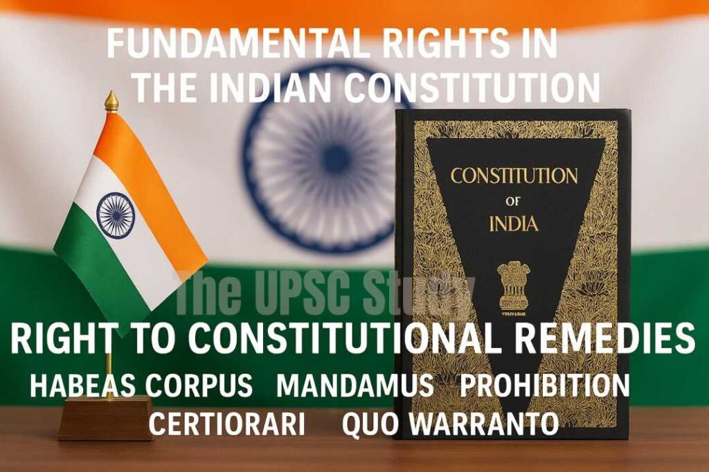 The Fundamental Rights in Indian Constitution, enshrined in Part III (Articles 12-35), serve as the foundational bedrock for democratic governance. They guarantee indispensable civil liberties, ensuring justice, equality, and dignity for every citizen. Though not absolute, these rights are protected by the judiciary, notably through the powerful remedy of Article 32, which Dr. B.R. Ambedkar called the ‘soul’ of the Constitution. Through landmark cases like Kesavananda Bharati and the expansion of Article 21, the Supreme Court has made the Fundamental Rights in Indian Constitution dynamic, ensuring they remain the ultimate constitutional bulwark against arbitrary state action, essential for individual development and societal progress.
